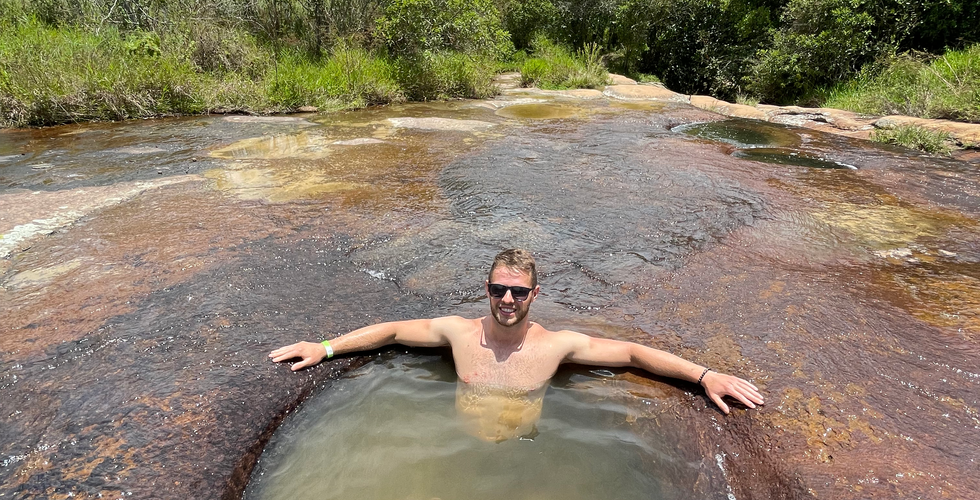 In Guadeloupe, ungefähr zwei Motorrad-Stunden südlich von San Gil, findet man ein beeindruckendes Naturspektakel. Es handelt sich um die «Gachas», einen Weg aus rötlichem Gestein, der mit mehr als 250 kleinen Natur-Jacuzzis geschmückt ist. Durch den ungefähr kilometerlangen Weg fliesst kristallklares Wasser, so dass man das Gefühl hat, sich mit den Wolken am Himmel zu bewegen. Zum Teil sind die Brunnen von Natur aus miteinander verbunden, sodass man hin- und her schwimmen kann. Auch lässt sich das nasse Gestein als Rutsche verwenden, um in die Jacuzzis zu rutschen. Das letzte mal hatte ich im Kindergarten so viel Spass.